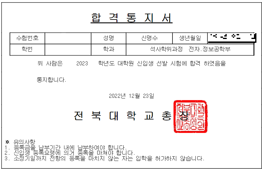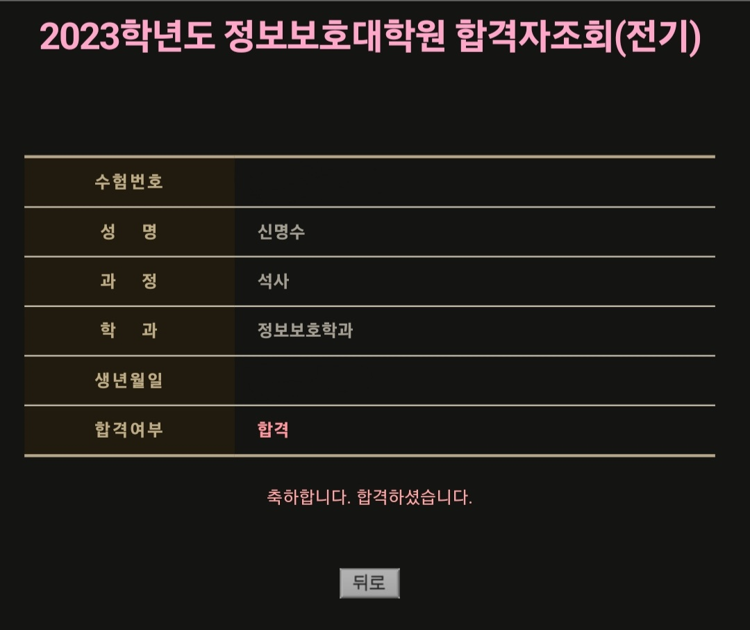 11월에 본 고려대학교 정보보호대학원 면접 결과가 나왔습니다.