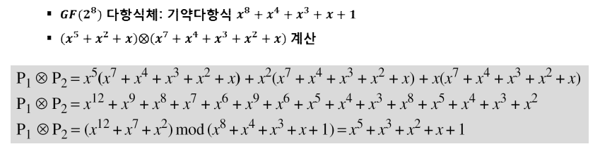 다항식체는 \(GF(2)\)와 \(GF(2^n)\)을 사용하여 연산.