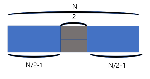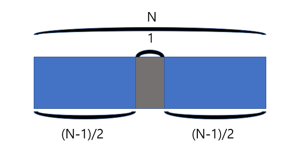 전체 길이(N)가 홀수일 때와 짝수일 때를 나누어서 생각해볼 수 있다.