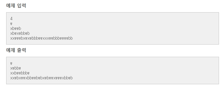 base case : string의 현재 위치(pos)가 'x'가 아닌경우 -> 해당 문자("w" 또는 "b") 를 stack에 쌓습니다.