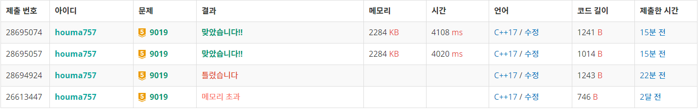 | 16928 뱀과 사다리 게임 (0) | 2021.04.26 |
