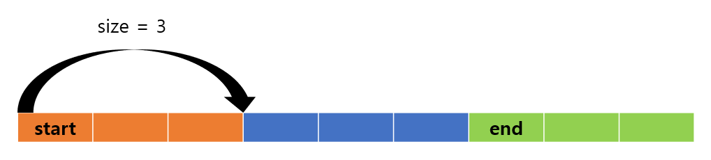 size를 3등분된 문자열의 크기라고 할 때, end = start+size+size 라고 할 수 있다.