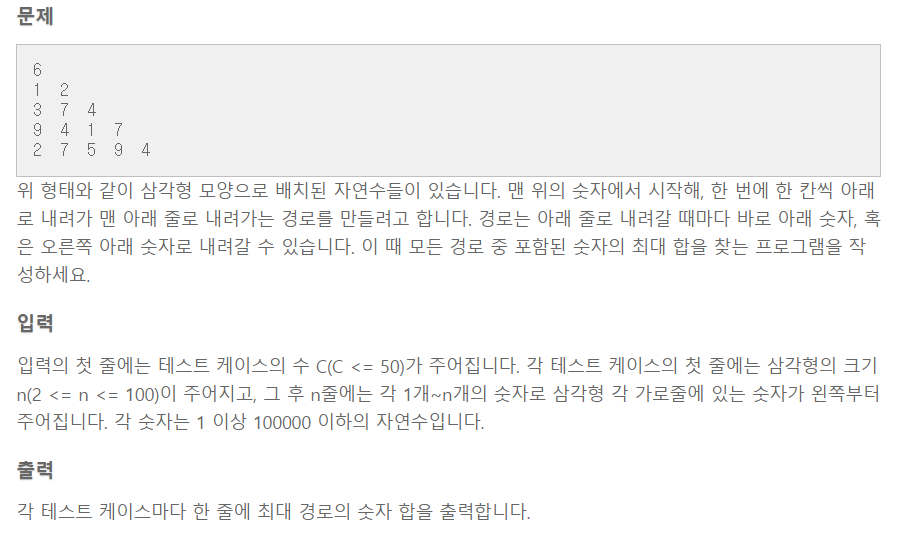 algospot.com/judge/problem/read/TRIANGLEPATH